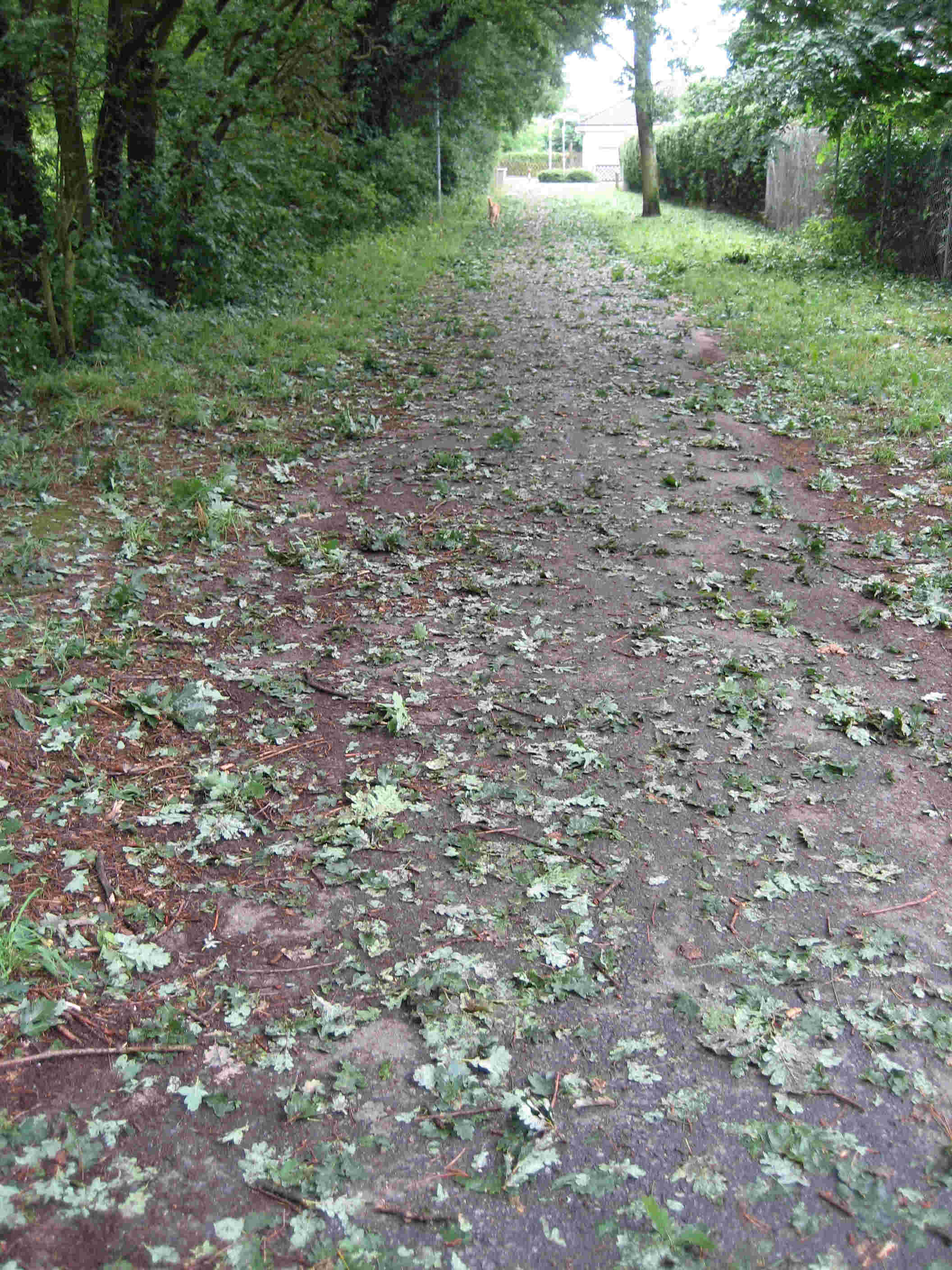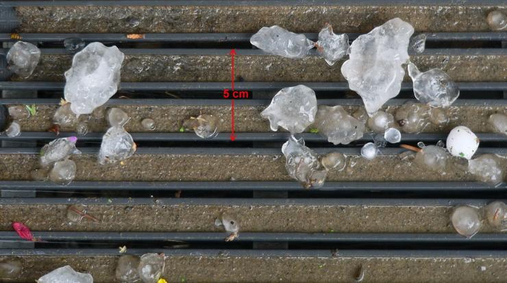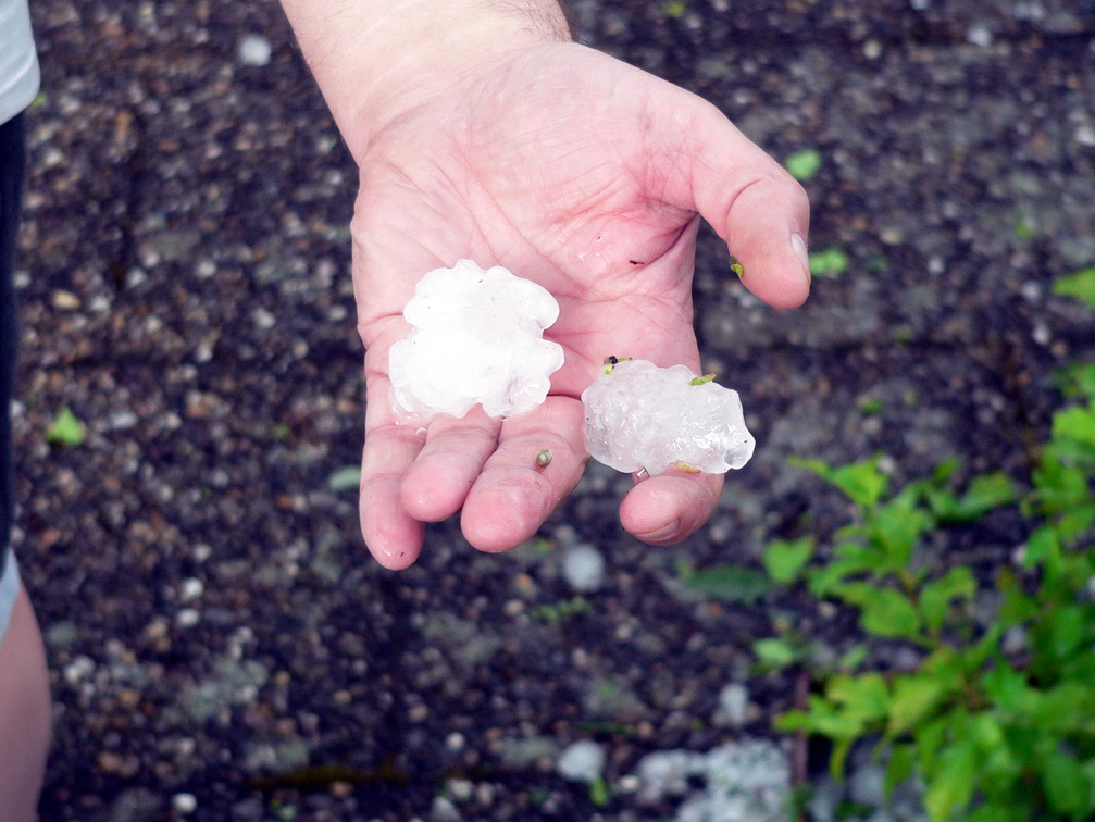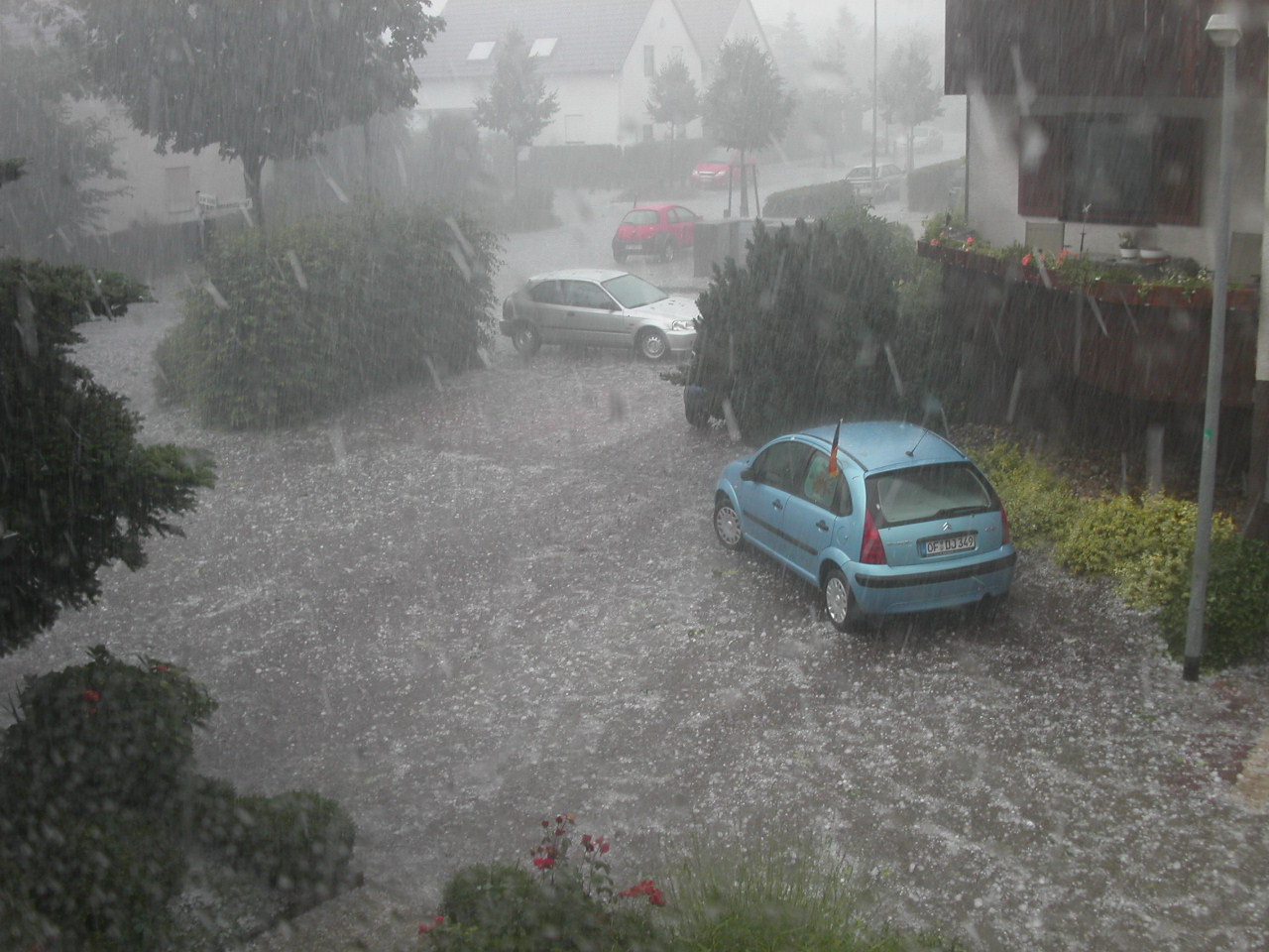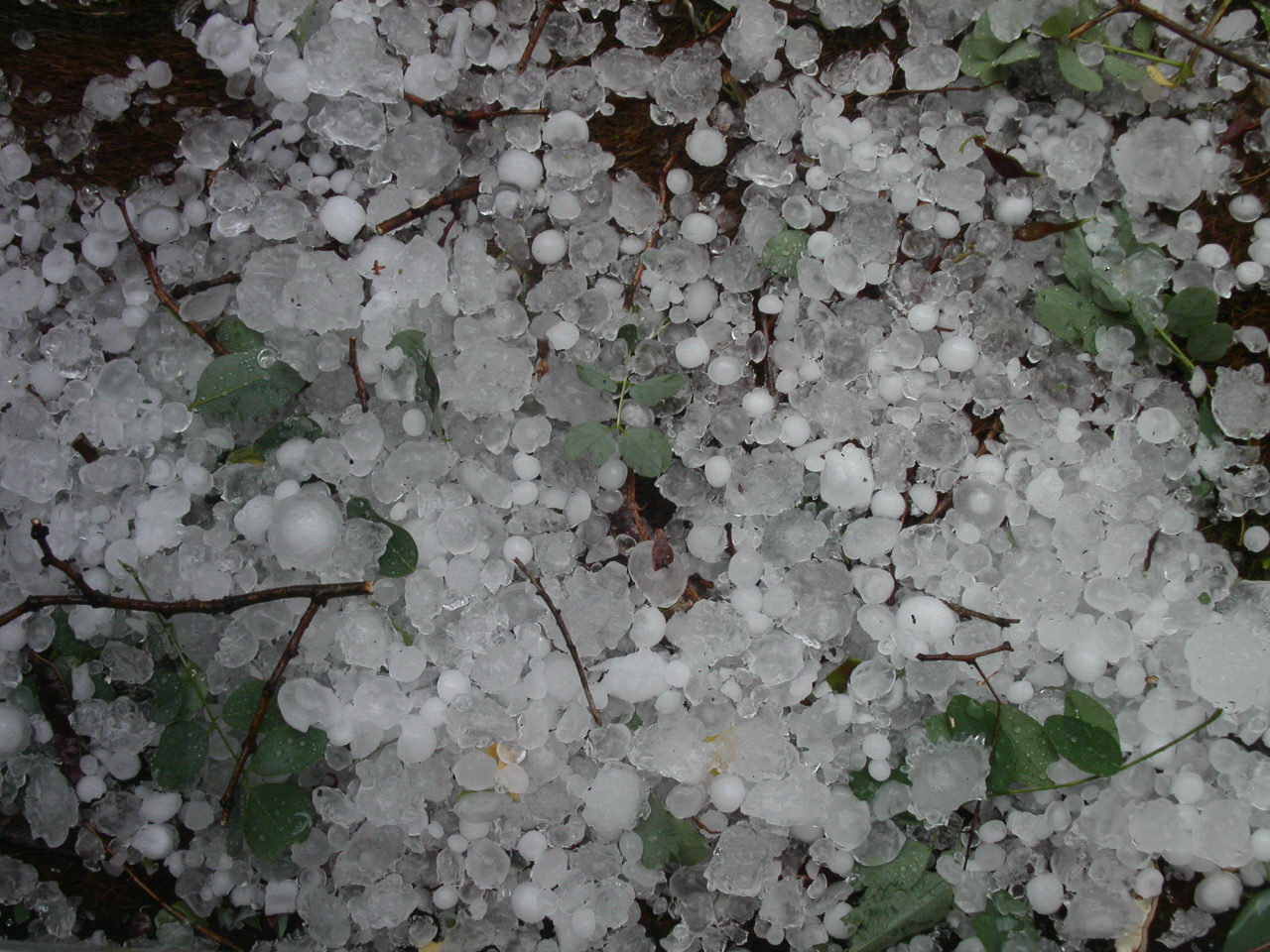 Werden Hydrometeore in flüssiger und/oder fester Form aus Wolken ausgeschieden und erreichen den Erdboden, so handelt es sich um fallende Niederschläge. Dazu gehören Sprühregen, Regen, unterkühlter Sprühregen, unterkühlter Regen, Schnee, Schnee-griesel, Eisnadeln (Diamantstaub, Polarschnee), Eiskörner, Reif-, Frostgraupeln und Hagel (s. Seite 'Skripte (pdf)', Skript ‘Fallender Niederschlag’). Hagelunwetter am 25.06.2008 (63303 Dreieich-Offenthal, Hessen) Die Niederschlagsmenge am 25.06.2008 betrug am BTZ Langen (DWD, 63225 Langen, Hessen) 27,58 mm. Davon sind etwa 25 mm in 30 Minuten gefallen.
